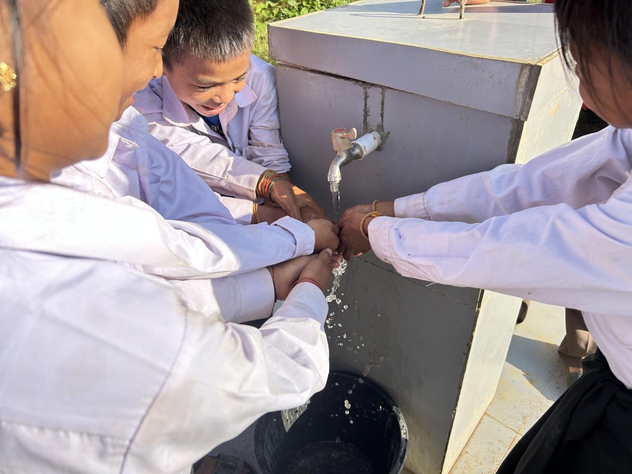 news在老撾北部群山環(huán)繞的喬家羅村,一場簡樸而熱烈的“出水儀式”在喬家羅村小學(xué)操場東北角舉行。當(dāng)清澈的地下水從井口噴涌而出時,圍觀的孩子們歡呼雀躍、捧水洗手,老師們雙手合十、連聲道謝,現(xiàn)場的掌聲與笑聲久久回響。