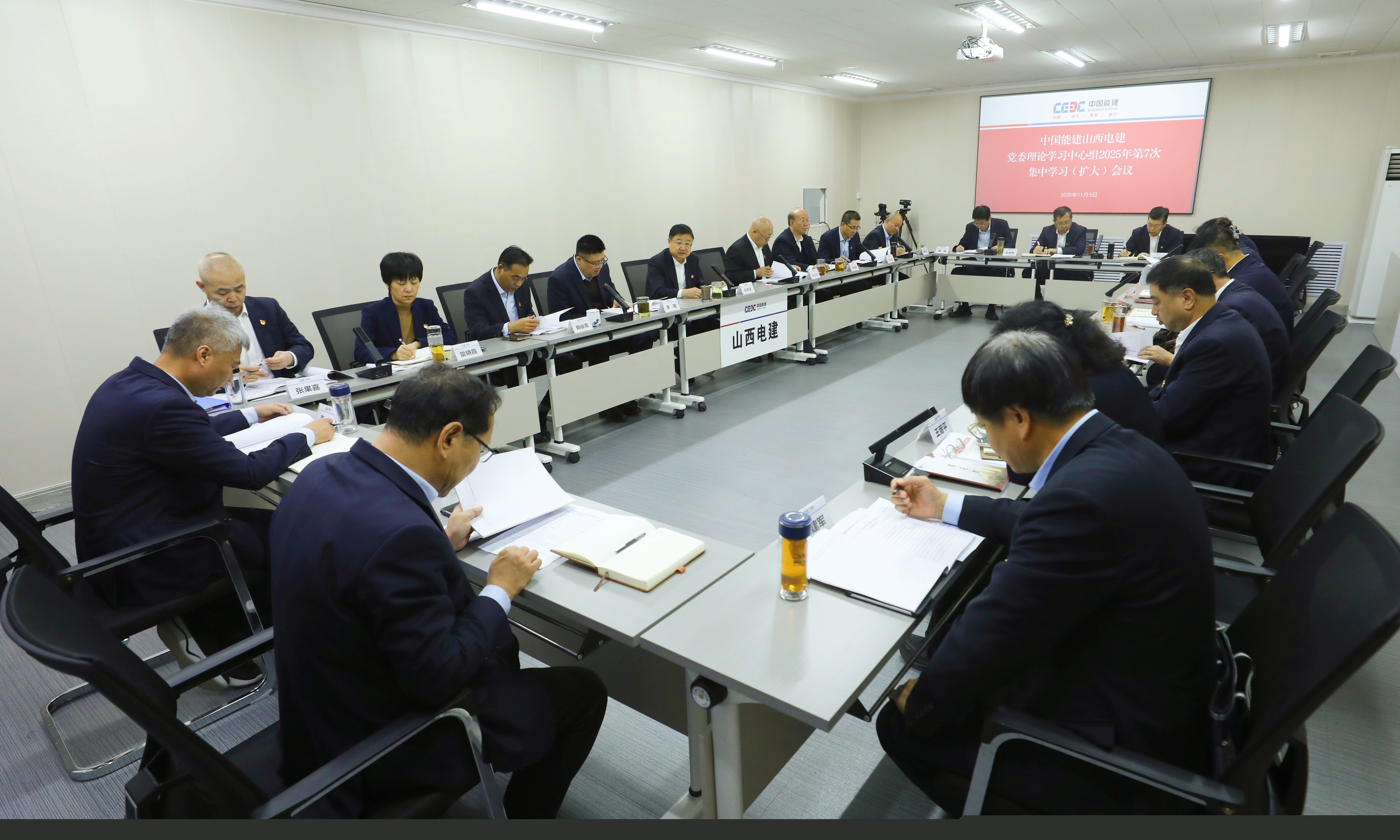 news11月3日,中國(guó)能建山西電建黨委舉辦2025年第七次黨委中心組(擴(kuò)大)學(xué)習(xí)會(huì),專題傳達(dá)學(xué)習(xí)黨的二十屆四中全會(huì)精神,并進(jìn)行交流研討,研究部署學(xué)習(xí)宣貫工作。