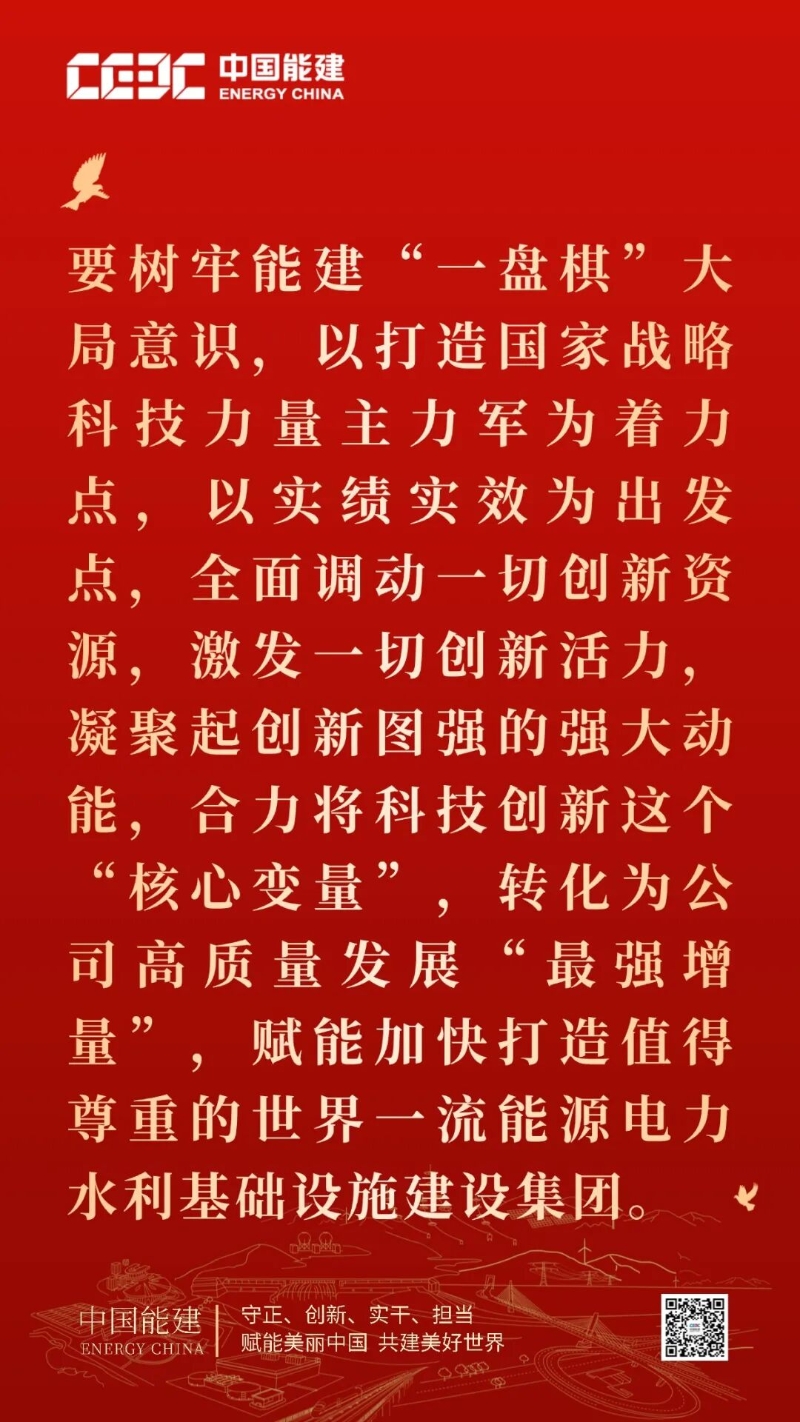 公司2026年工作會(huì)暨二屆一次職代會(huì)深入貫徹習(xí)近平總書記重要指示精神,旗幟鮮明地將“堅(jiān)持創(chuàng)新驅(qū)動(dòng)、科技強(qiáng)企”作為“十五五”開好局、起好步的“五大核心原則”之一,要求始終把科技創(chuàng)新作為第一動(dòng)力,充分發(fā)揮科技創(chuàng)新對(duì)于企業(yè)發(fā)展的引領(lǐng)、驅(qū)動(dòng)、支撐作用。公司上下要樹牢能建“一盤棋”大局意識(shí),以打造國家戰(zhàn)略科技力量主力軍為著力點(diǎn),以實(shí)績實(shí)效為出發(fā)點(diǎn),全面調(diào)動(dòng)一切創(chuàng)新資源,激發(fā)一切創(chuàng)新活力,凝聚起創(chuàng)新圖強(qiáng)的強(qiáng)大動(dòng)能,合力將科技創(chuàng)新這個(gè)“核心變量”,轉(zhuǎn)化為公司高質(zhì)量發(fā)展“最強(qiáng)增量”,賦能加快打造值得尊重的世界一流能源電力水利基礎(chǔ)設(shè)施建設(shè)集團(tuán)。
