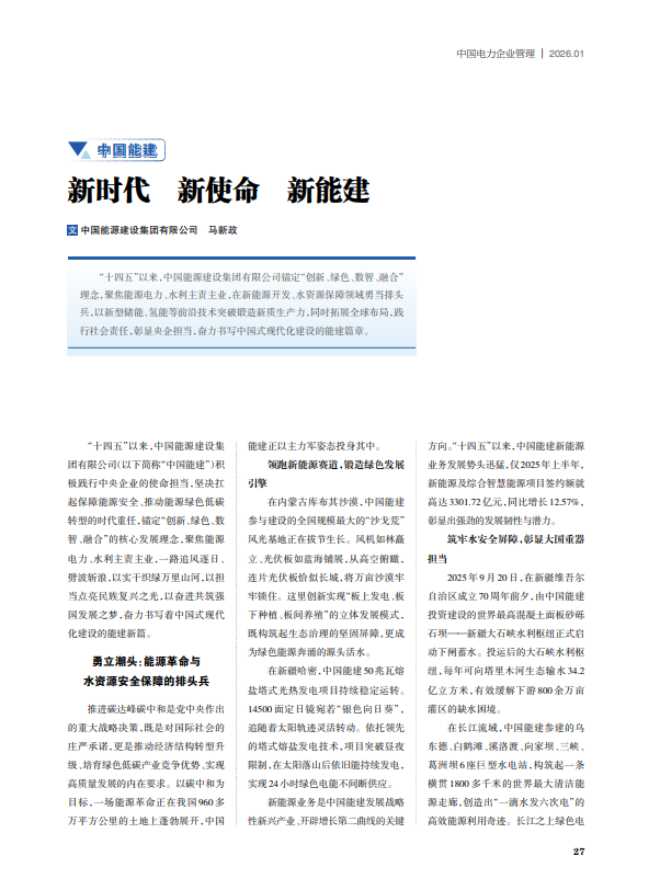 中國電力企業管理:新時代 新使命 新能建